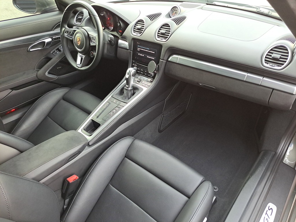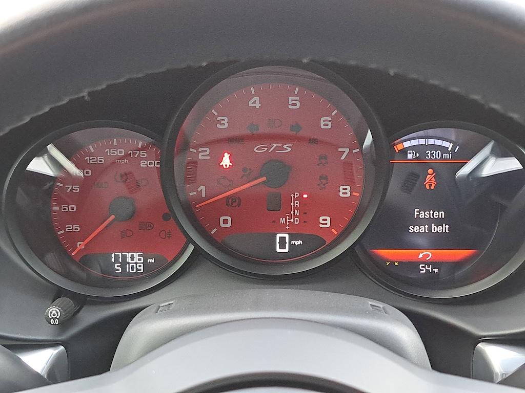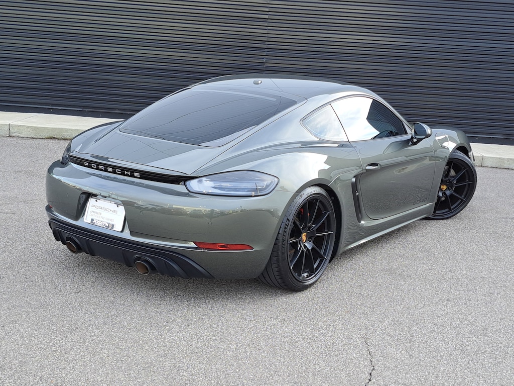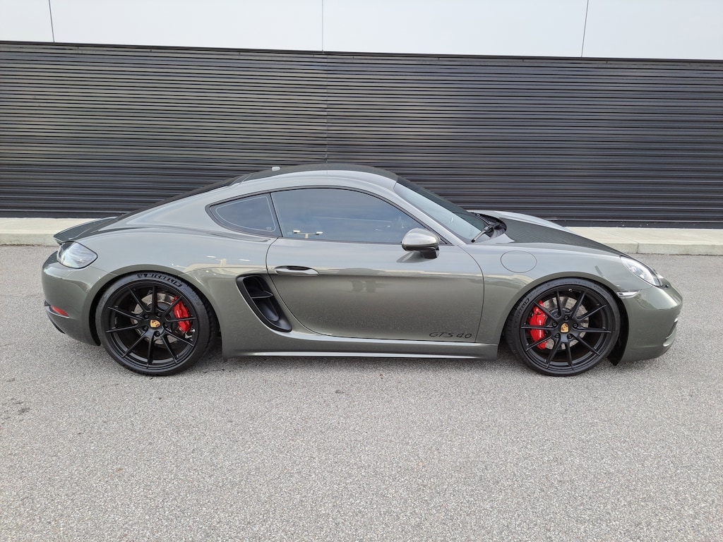 2021 Porsche 718 Cayman GTS 4.0. Porsche Approved Certified Pre-Owned. 17,703 Miles. Aventurine Green Metallic Exterior. Leather/Race-Tex Interior in Black with Leather Seat Centers. Premium Package. PDK. Power Steering Plus. Adaptive Sport Seats Plus (18-way) with Memory Package. Ventilated Seats. Seat Belts in Guards Red. Instrument Dials in Guards Red. PDK Gear Selector in Aluminum.