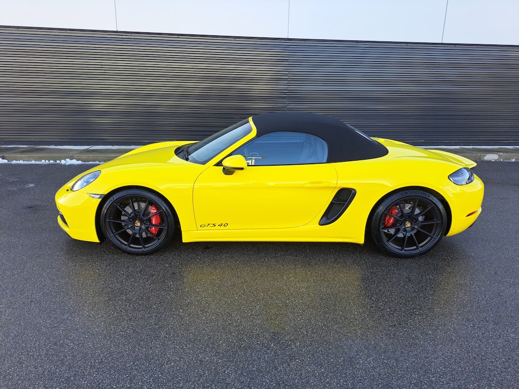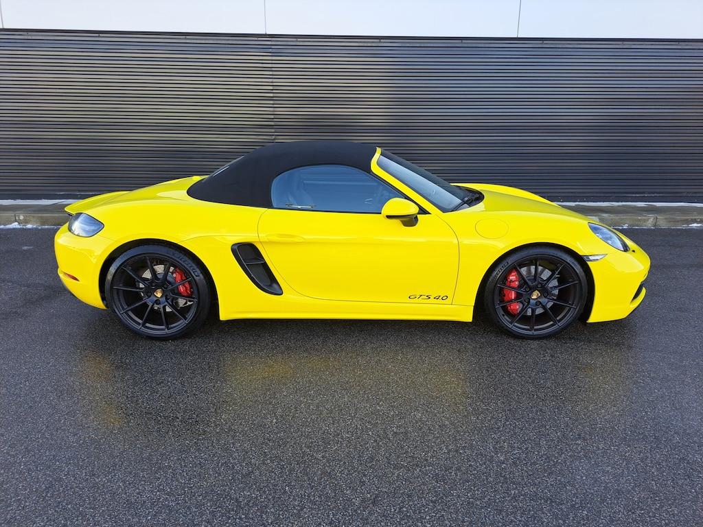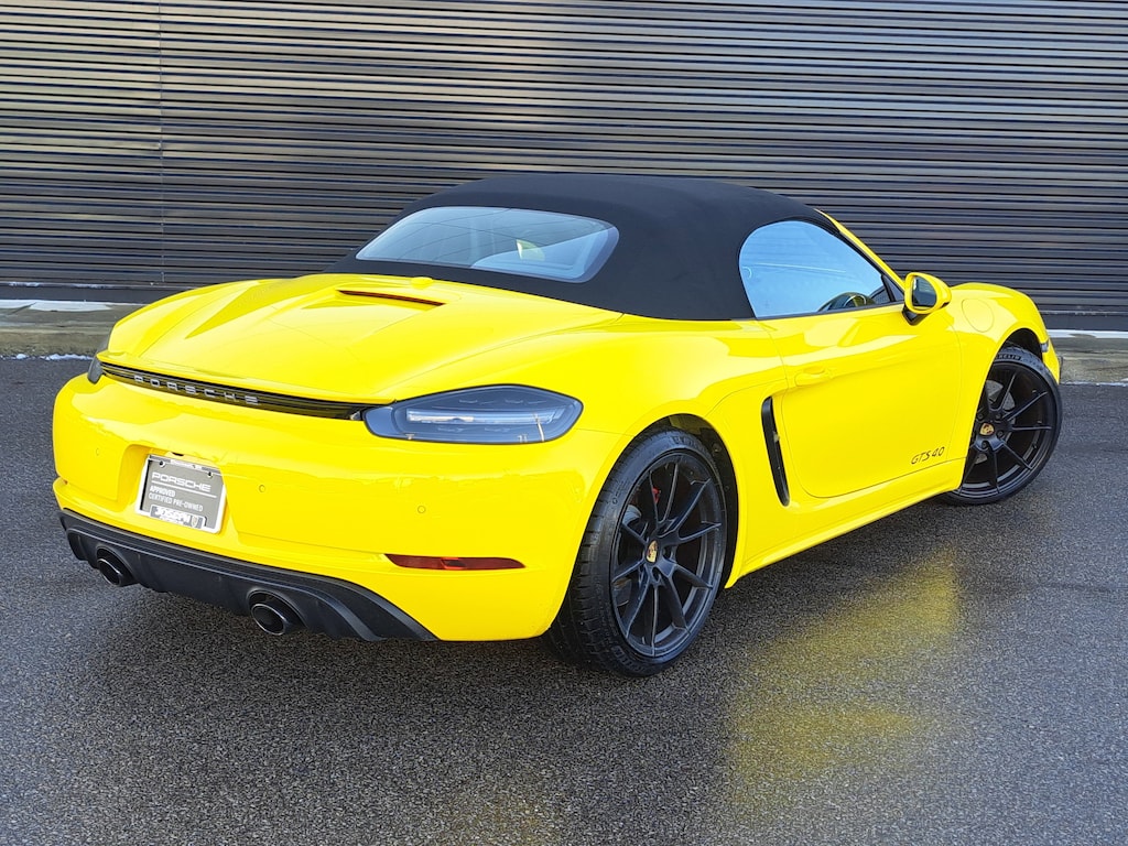 2022 Porsche 718 Boxster GTS 4.0. Porsche Approved Certified Pre-Owned. 25,494 Miles. Racing Yellow Exterior. Standard Interior in Black Leather/Race-Tex with Leather Seat Centers. Premium Package. 6 Speed Manual. Deletion of "GTS 4.0" Decal on Doors. Exclusive Design Fuel Cap. Power Steering Plus. Adaptive Sport Seats Plus (18-way) with Memory Package. Ventilated Seats. Smartphone Compartment