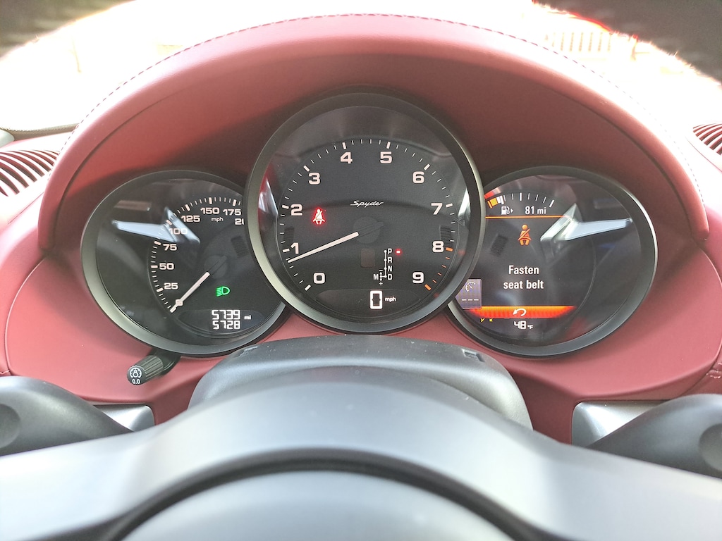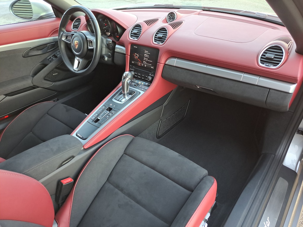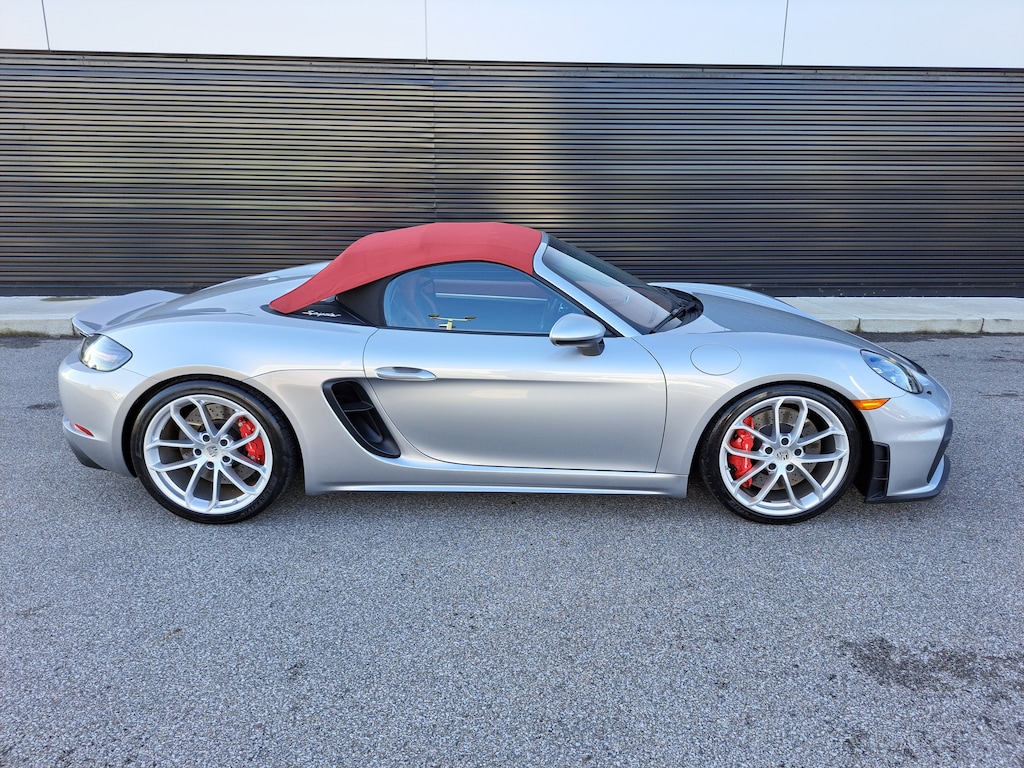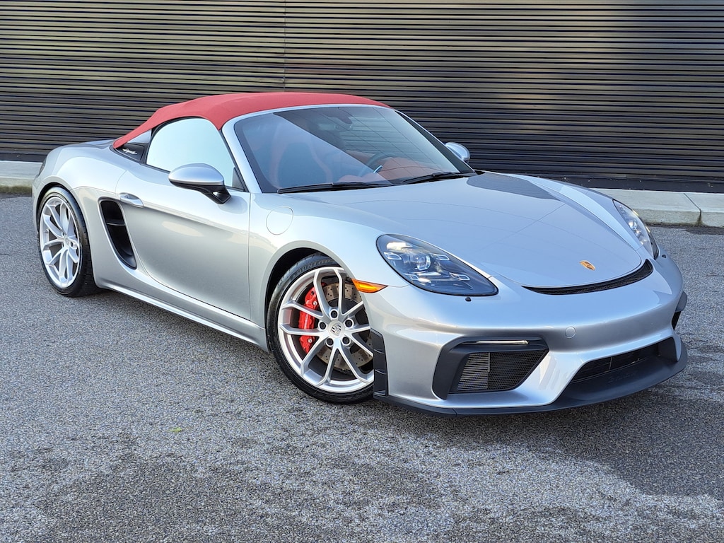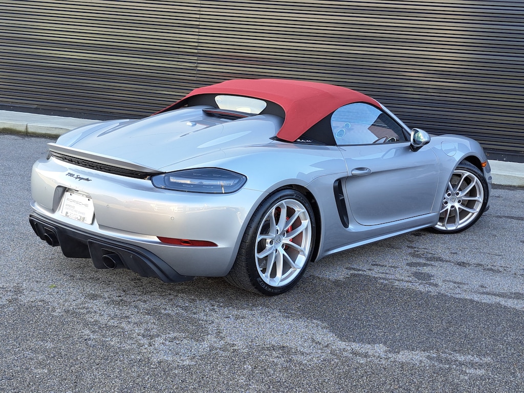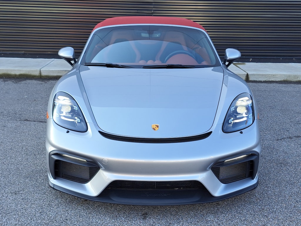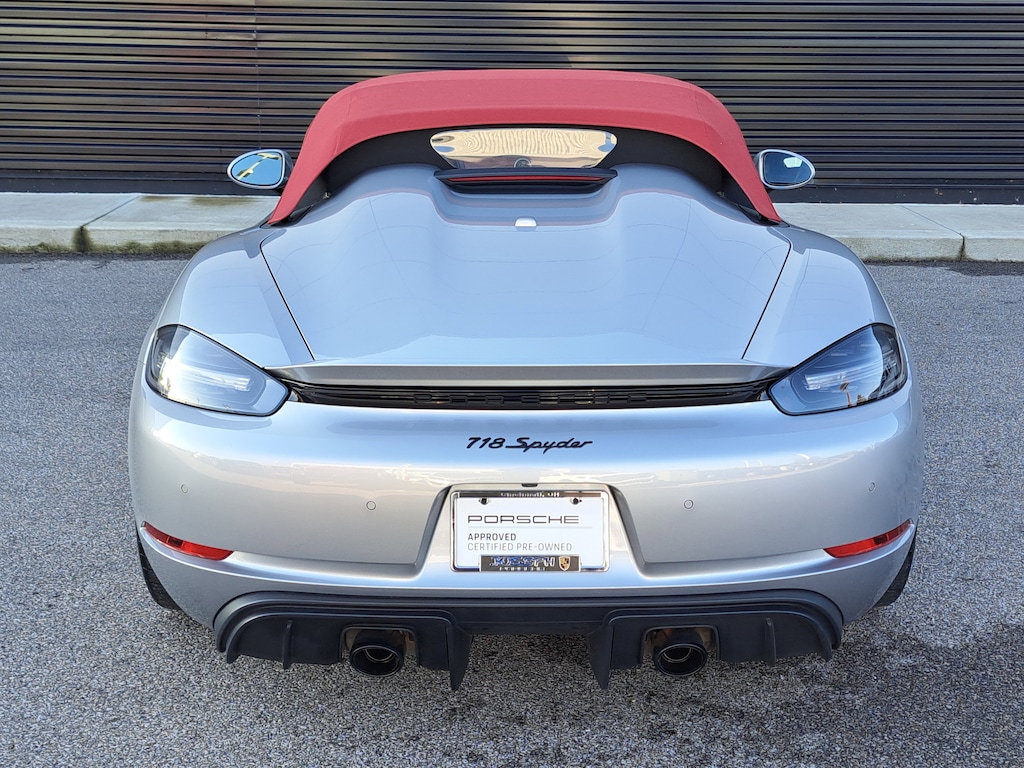 2023 Porsche 718 Spyder. Porsche Approved Certified Pre-Owned. 5,737 Miles. GT Silver Metallic. Spyder Classic Interior Package. Spyder Roof in Red/Black. Adaptive Sport Seats Plus (18-way). BOSE Surround Sound System. Navigation including Porsche Connect. LED Headlights incl. Porsche Dynamic Light System (PDLS). Light Design Package.
