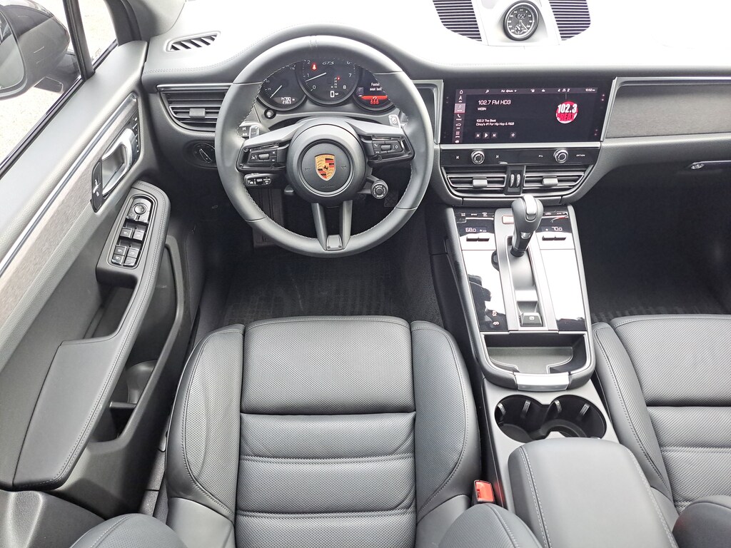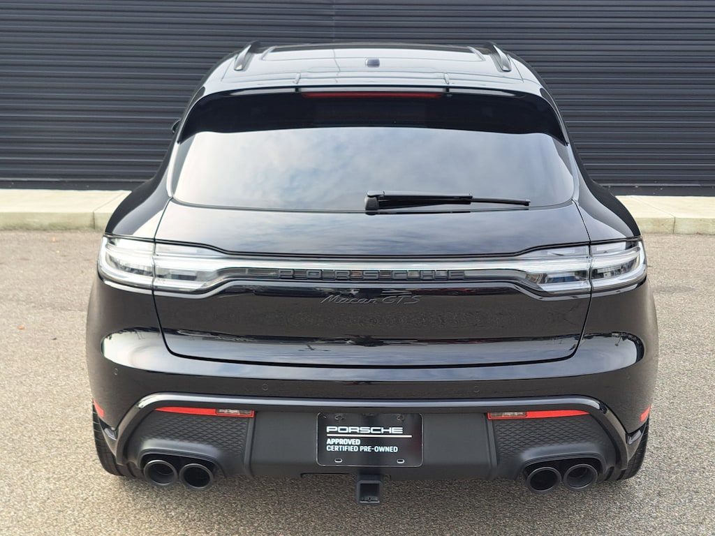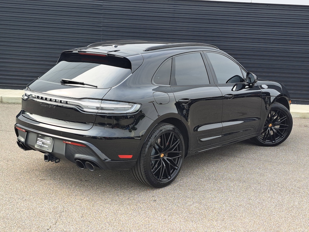 2023 Porsche Macan GTS. Porsche Approved Certified Pre-Owned. 14,788 Miles. Black Exterior. Leather Package in Black. Premium Package Plus. Adaptive Sport Seats Plus (18-way) with Memory Package. Roof Rails in High Gloss Black. Side Blades in Exterior Color. Under Door Puddle Light Projectors. Trailer Hitch without Tow Ball. Adaptive Air Suspension incl. Porsche Active Suspension Management (PASM). Sport Chrono Package. Heated GT Sport Steering Wheel in Leather. Porsche Crest on Headrests (Front and Rear). Surround View. Lane Keep Assist (LKA) incl. Traffic Jam Assist.