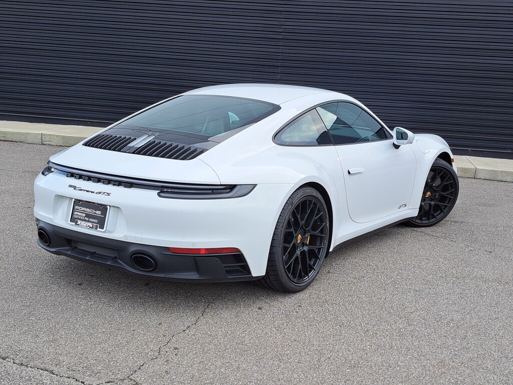 2024 Porsche 911 GTS. Porsche Approved Certified Pre-Owned. 10,550 Miles. White Exterior. Leather/Race-Tex Interior with Leather Seat Centers. Premium Package. Porsche Dynamic Chassis Control (PDCC). Front Axle Lift System. Rear Axle Steering. Porsche Ceramic Composite Brakes (PCCB) with Calipers in Yellow. Extended Range Fuel Tank (23.7 Gal). 20"/21" RS Spyder Design Wheels in Satin Black. Adaptive Sport Seats (18-way) with Memory Package. Heated GT Sport Steering Wheel with Trim in Matte Carbon Fiber. Ventilated Seats (Front). Interior Trim Inlays in Matte Carbon Fiber. LED-Matrix Design Headlights in Black incl. Porsche Dynamic Light System Plus (PDLS+).