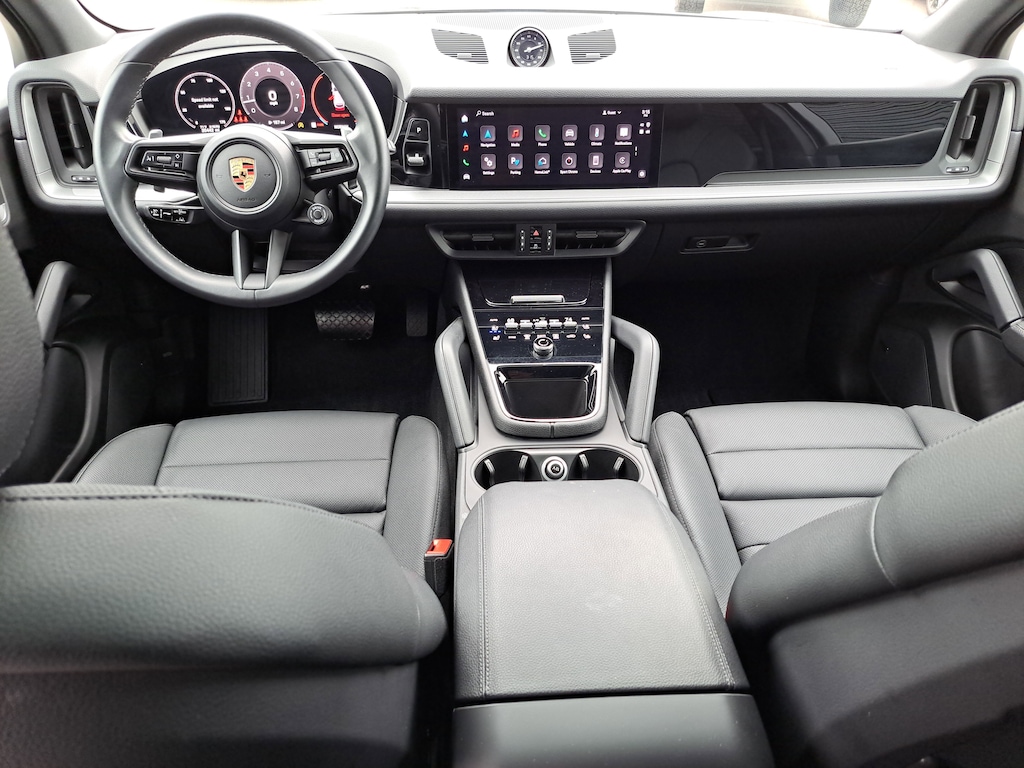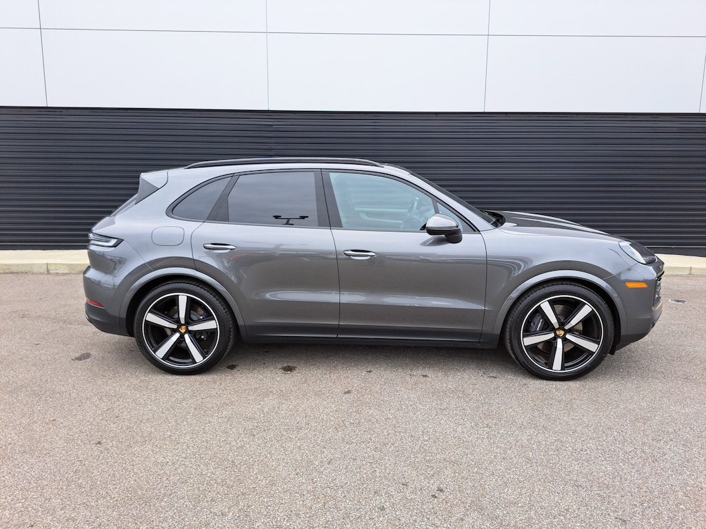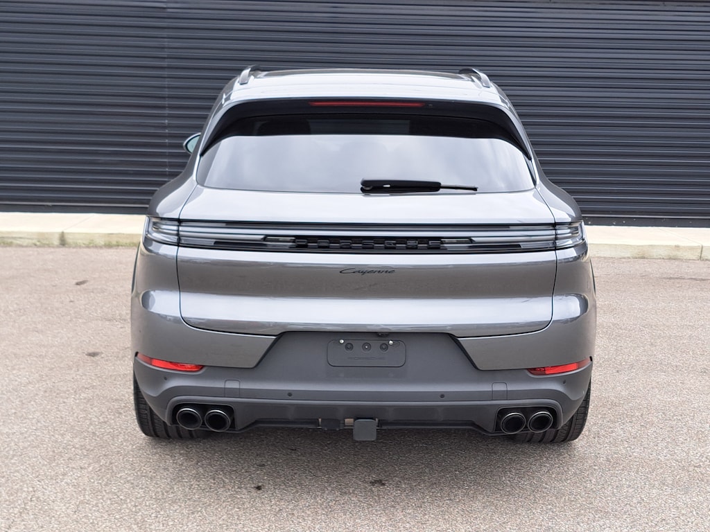 2024 Porsche Cayenne. Porsche Approved Certified Pre-Owned. 20,426 Miles. Quartzite Grey Metallic Exterior. Standard Interior in Black. Premium Package. Porsche InnoDrive incl. Adaptive Cruise Control (ACC) and Active Lane Keep Assist (ALK). Roof Rails in Black Aluminum Finish. Window Trim in High Gloss Black. "PORSCHE" Logo and Model Designation on Rear in High Gloss Black. Trailer Hitch without Tow Ball. Adaptive Air Suspension incl. Porsche Active Suspension Management (PASM). Sport Chrono Package. Sport Exhaust System incl. Tailpipes in Dark Bronze. Rear Axle Steering. 22" Exclusive Design Sport Wheels in High Gloss Black. Power Seats (14-way) with Comfort Memory. Heated Steering Wheel. Ventilated Seats (Front). Exclusive Design Taillights.