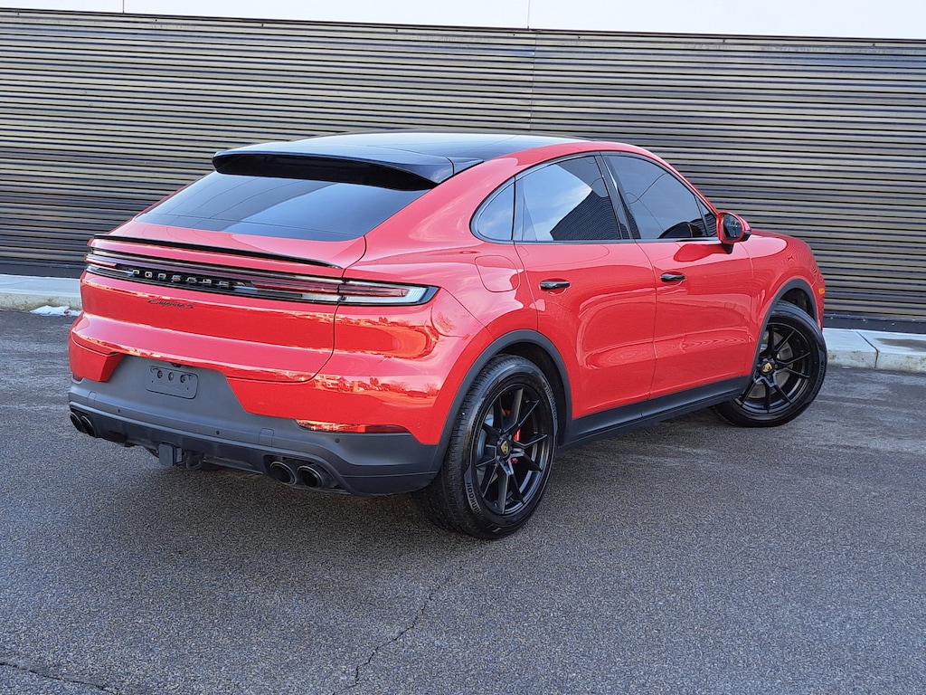 2024 Porsche Cayenne S Coupe. 11,560 Miles. Porsche Approved Certified Pre-Owned. Carmine Red Exterior. Leather Interior in Black/Mojave Beige. Premium Package Plus. Adaptive Sport Seats (18-way) with Comfort Memory. Adaptive Air Suspension incl. Porsche Active Suspension Management (PASM). Sport Chrono Package with Porsche Design Subsecond Clock. Sport Exhaust System incl. Tailpipes in Dark Bronze. Interior Trim in Matte Carbon Fiber with Accents in Neodyme. Interior Accents in Neodyme. Upper Wing in High Gloss Black.