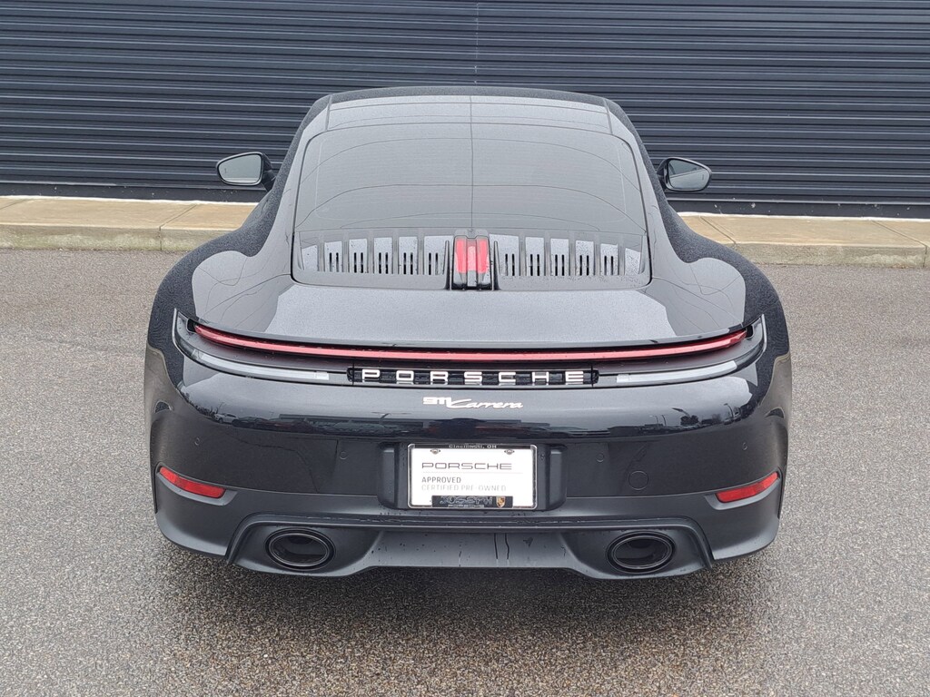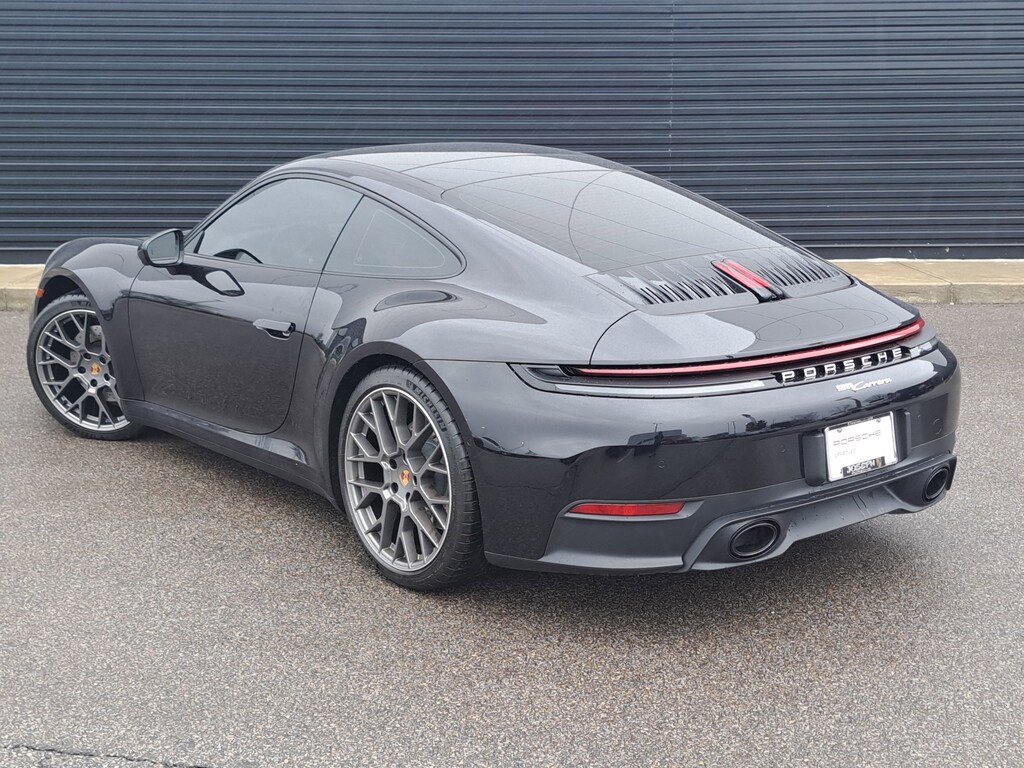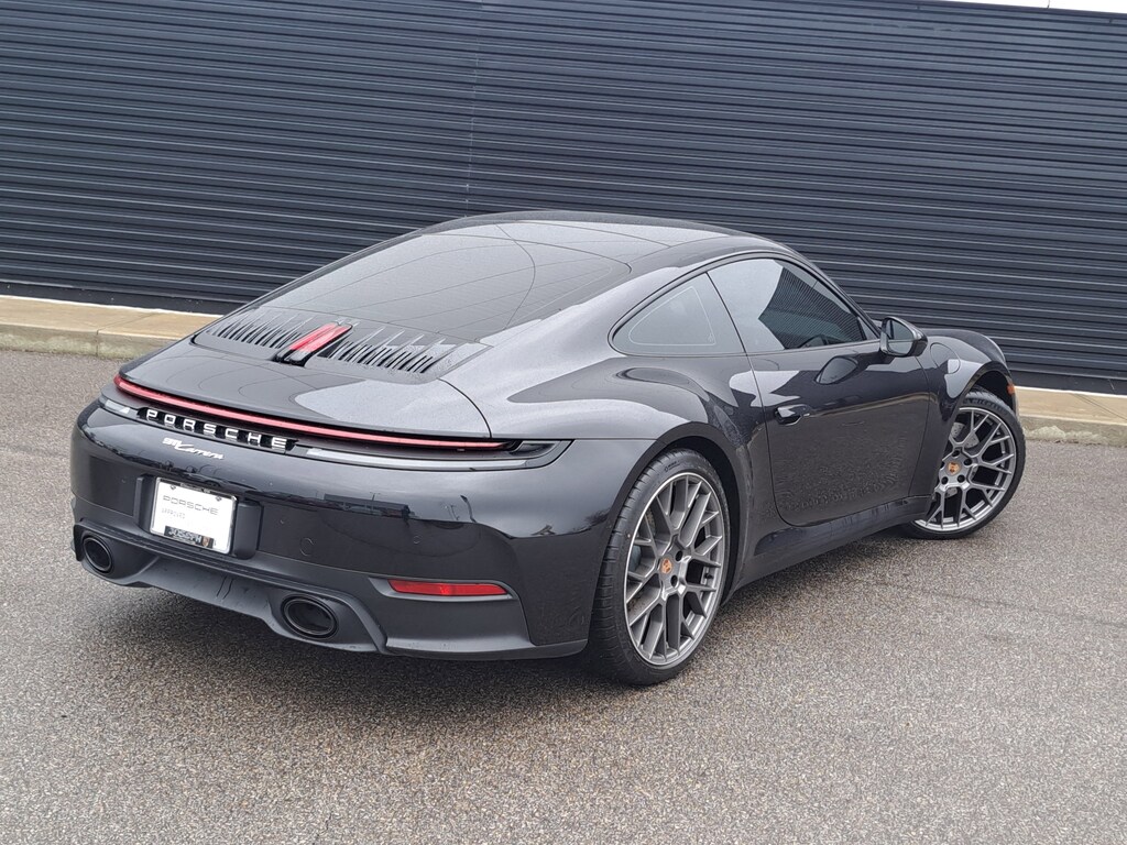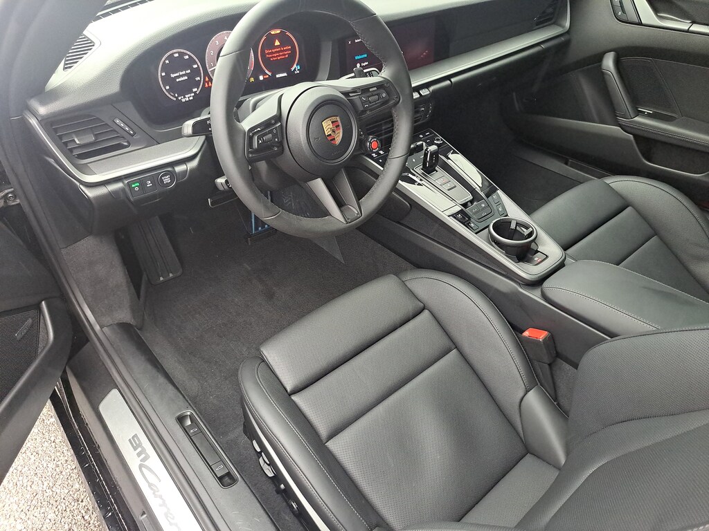 2025 Porsche 911 Carrera. Porsche Approved Certified Pre-Owned. 1,008 Miles. Jet Black Metallic Exterior. Standard Interior with Leather Seats (Front). Premium Package. Electric Slide/Tilt Sunroof in Glass. Sport Chrono Package. Sport Exhaust System incl. Tailpipes in Black. 20"21" RS Spyder Wheels. Adaptive Sport Seats Plus (18-way) with Memory Package. Heated GT Sport Steering Wheel in Leather.