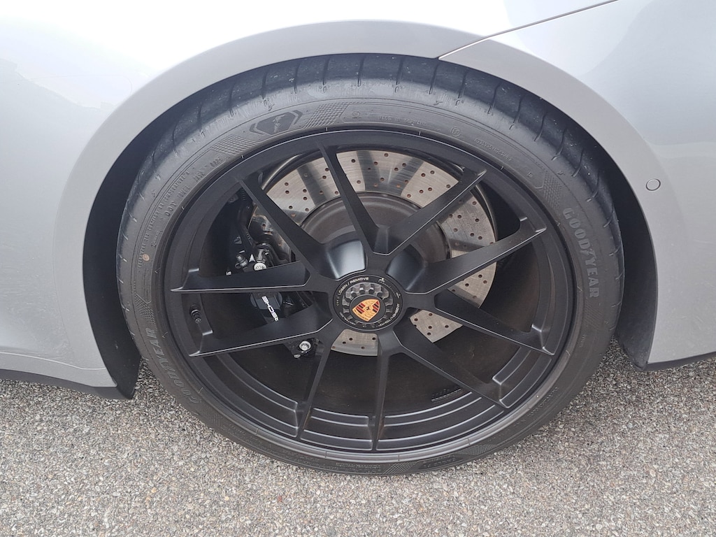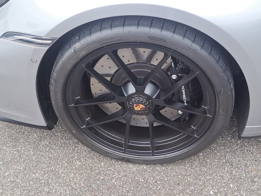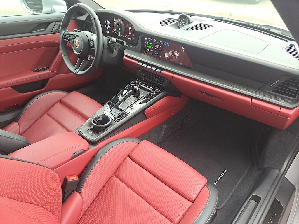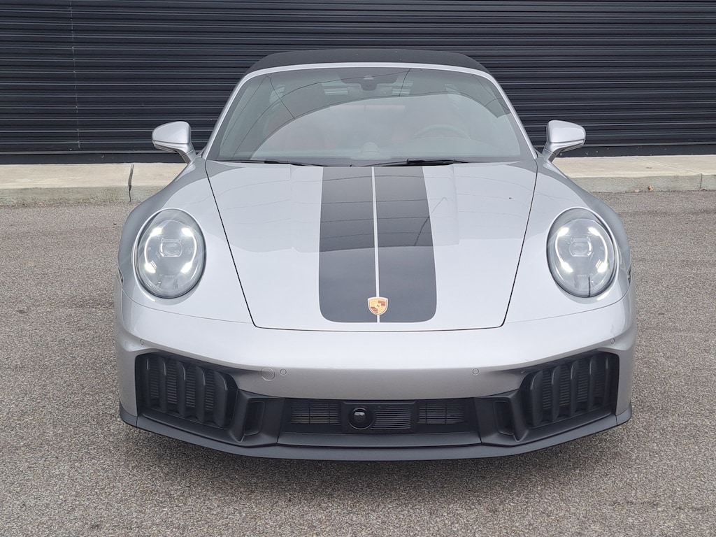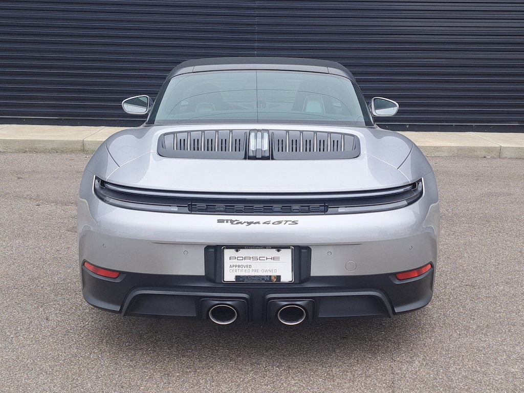 2025 Porsche 911 Targa 4 GTS. Porsche Approved Certified Pre-Owned, 1,193 Miles. GT Silver Metallic Exterior. Leather Interior in Black/Bordeaux Red. Premium Package. Sport Tailpipes in Titanium. Adaptive Sport Seats Plus (18-way) with Memory Package. Sport Seats Plus Backrest Shells in Leather with Painted Inlay. Ventilated Seats (Front). Exterior Mirror Base in Exterior Color. Rear Lid Grille Vertical Slat Inlays in Exterior Color. Brake Calipers in High Gloss Black. Wheels Painted in Satin Black. Seat Belts in Bordeaux Red. Porsche Crests on Headrests (Front). Heated GT Sport Steering Wheel in Leather with Trim in Matte Carbon Fiber and Trim in Black. Center Console Lid with Model Designation. Exclusive Design Taillights. Under Door Puddle Light Projectors.