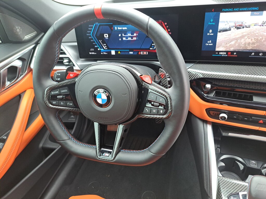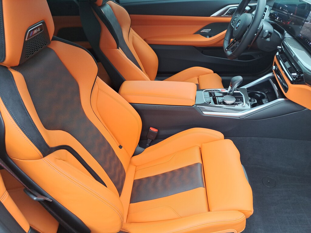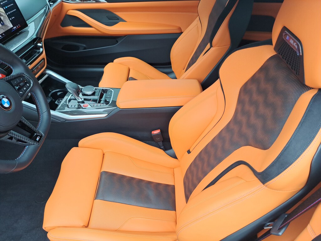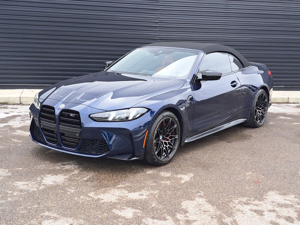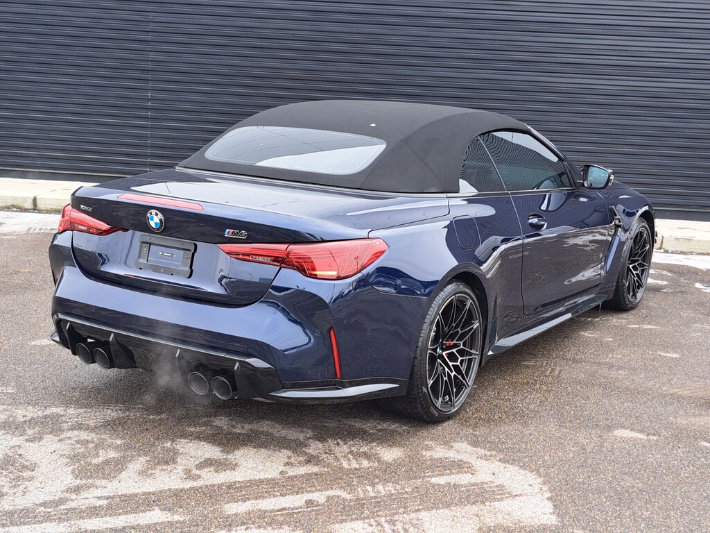 2025 BMW M4 Competition xDrive Convertible. 4,305 Miles. Tanzanite Blue II Metallic. Kyalami Orange/Black Leather. Parking Assistance Package. Executive Package. M Drive Professional. M Shadowline Lights. Carbon Fiber trim. Neck Warmer. Galvanic Controls. Front Ventilated Seats.