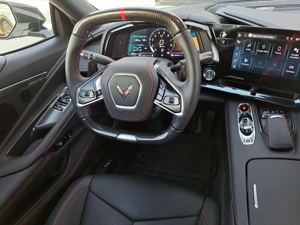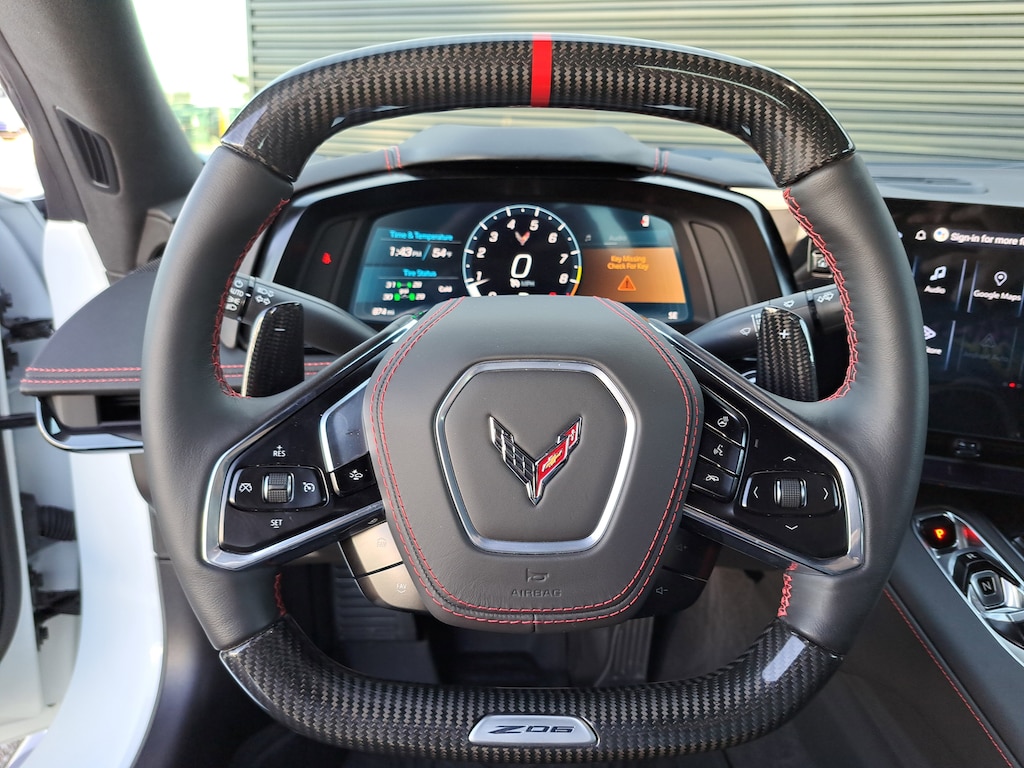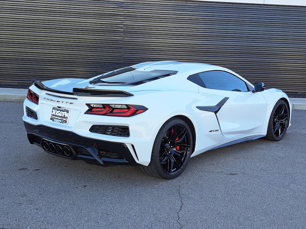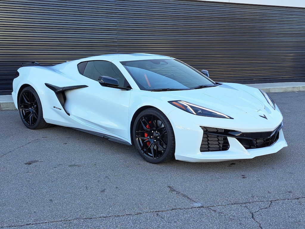 2025 Chevrolet Corvette Z06 3LZ Coupe. 865 Miles. Arctic White Exterior. Jet Black Interior. Front Lift Adjustable Height Memory. Spider Design Black Forged Aluminum Wheels. Bright Red Painted Brake Calipers. Stealth Interior Package. Engine Intake in Red. Torch Red Seat Belts. Adrenaline Red Custom Leather Stitch. Contoured Liner Protection Package. Exhaust Tips Black. Carbon Flash Metallic Painted Outside Mirrors.